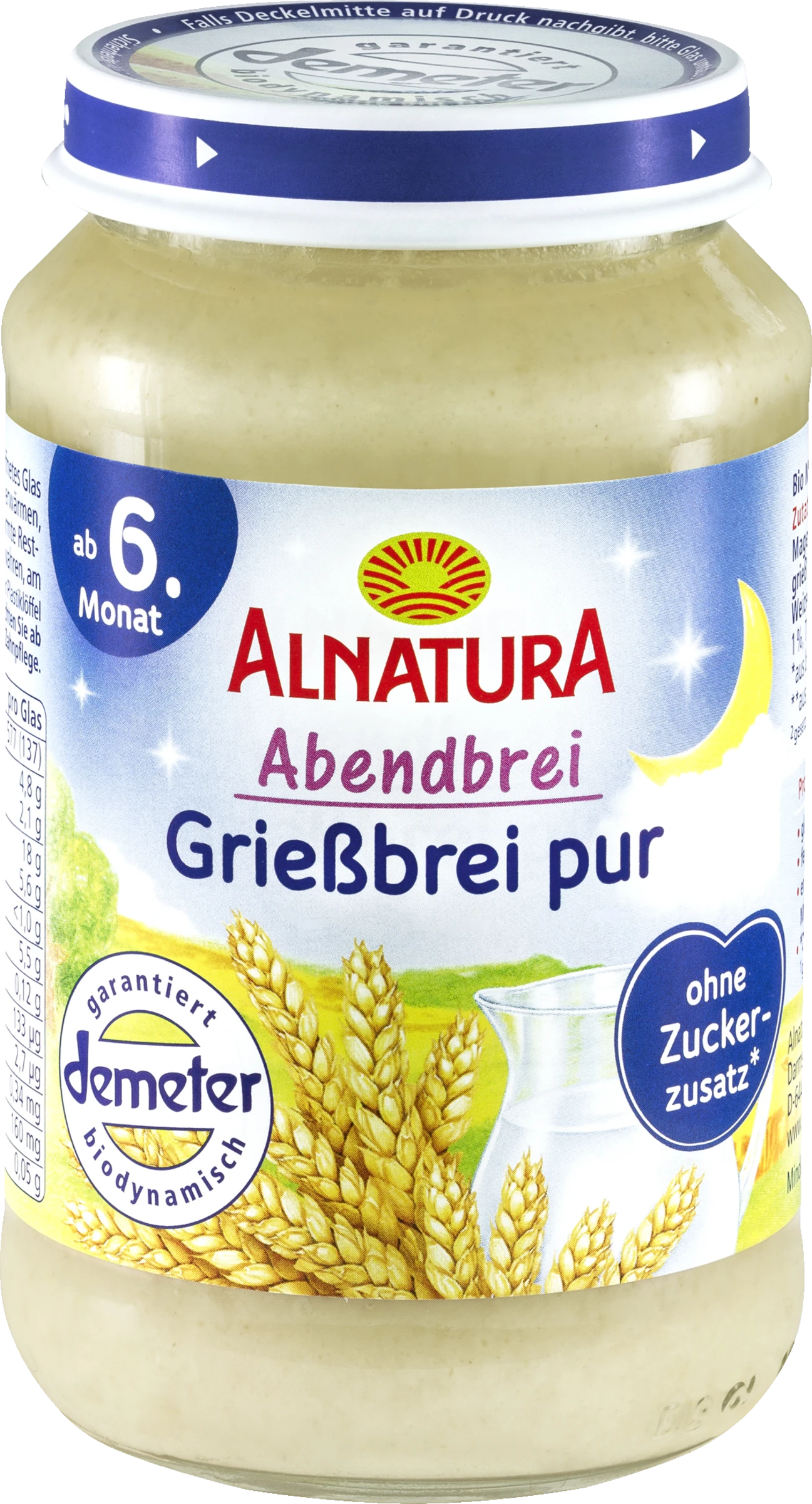 ENTRAHMTE MILCH* 53%, Wasser, WEIZENGRIEß* 5%, SAHNE* 5%, WEIZENVOLLKORNMEHL* 2%, WEIZENVOLLKORNFLOCKEN* grob gemahlen 1 %, Sonnenblumenöl** 1%, Thiamin (Vitamin B1)², Vitamin A², Vitamin D²