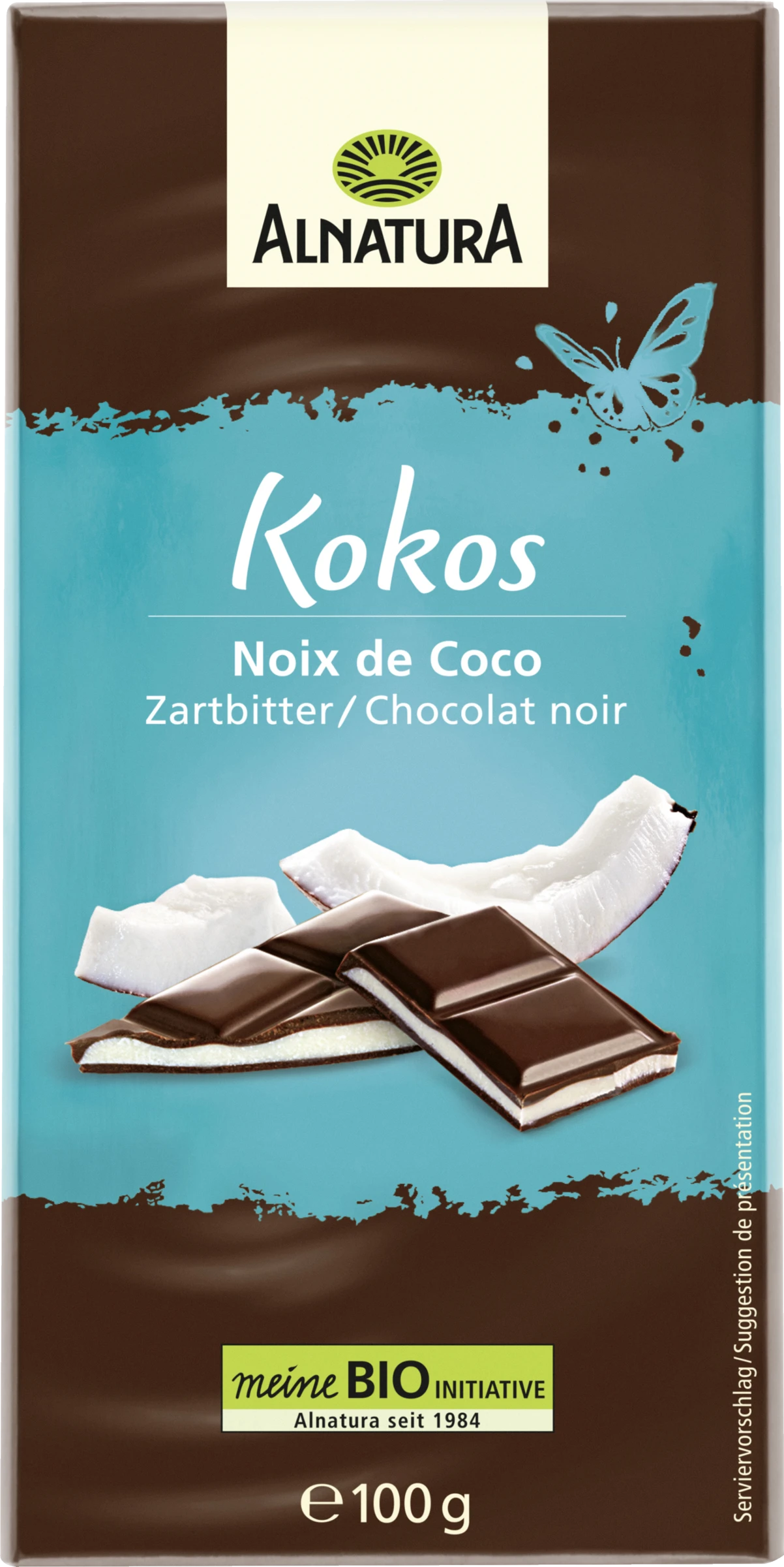 In dieser zartschmelzenden Tafel umhüllt milde Zartbitterschokolade eine cremige Kokosfüllung.