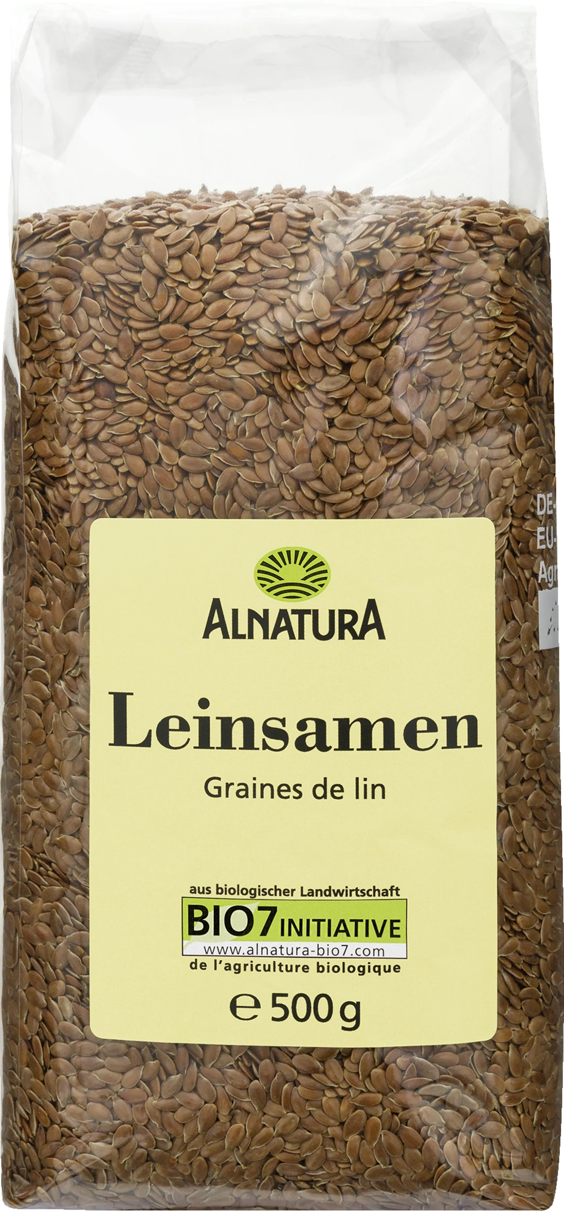 Leinsamen* *aus biologischer Landwirtschaft. Kann Spuren von Gluten enthalten.