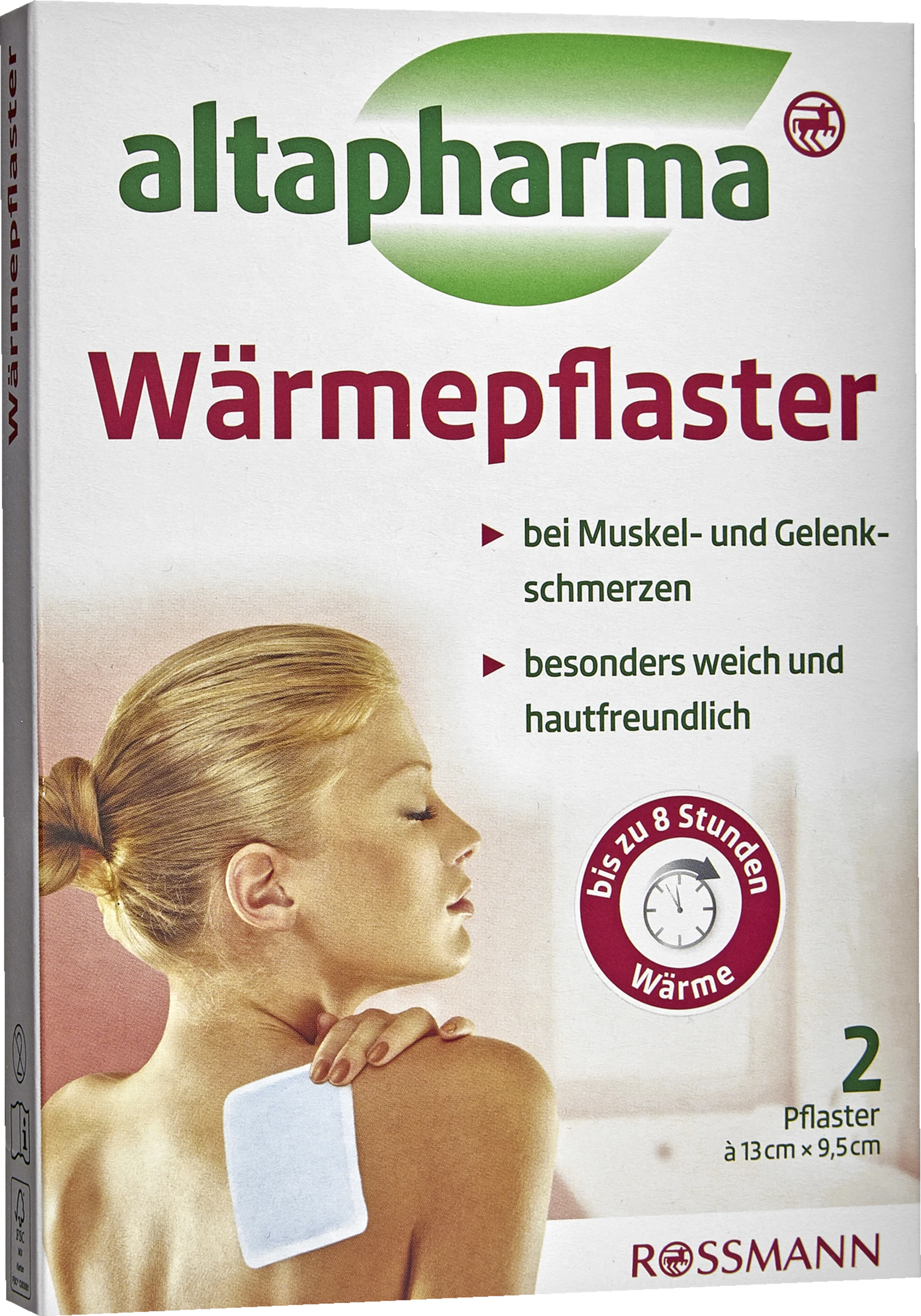 Altapharma Wärmepflaster lindern mit ihrer angenehmen und gut verträglichen Wärme wirksam Schmerzen und entspannen die verkrampfte und strapazierte Muskulatur. Auch Gelenkschmerzen mit Steifheit können durch die wohltuende Wärmewirkung positiv beeinflusst werden. Die flexiblen altapharma Wärmepflaster sind von weichem, hautfreundlichem Material umgeben und enthalten eine Mischung aus Aktivkohle und Eisenpulver, die sich beim Kontakt mit Sauerstoff erwärmt. Die Pflaster können gezielt auf die schmerzenden Stellen aufgebracht werden und haften gut auf der Haut. Nach Gebrauch lassen sie sich leicht wieder entfernen und sind besonders hautfreundlich.