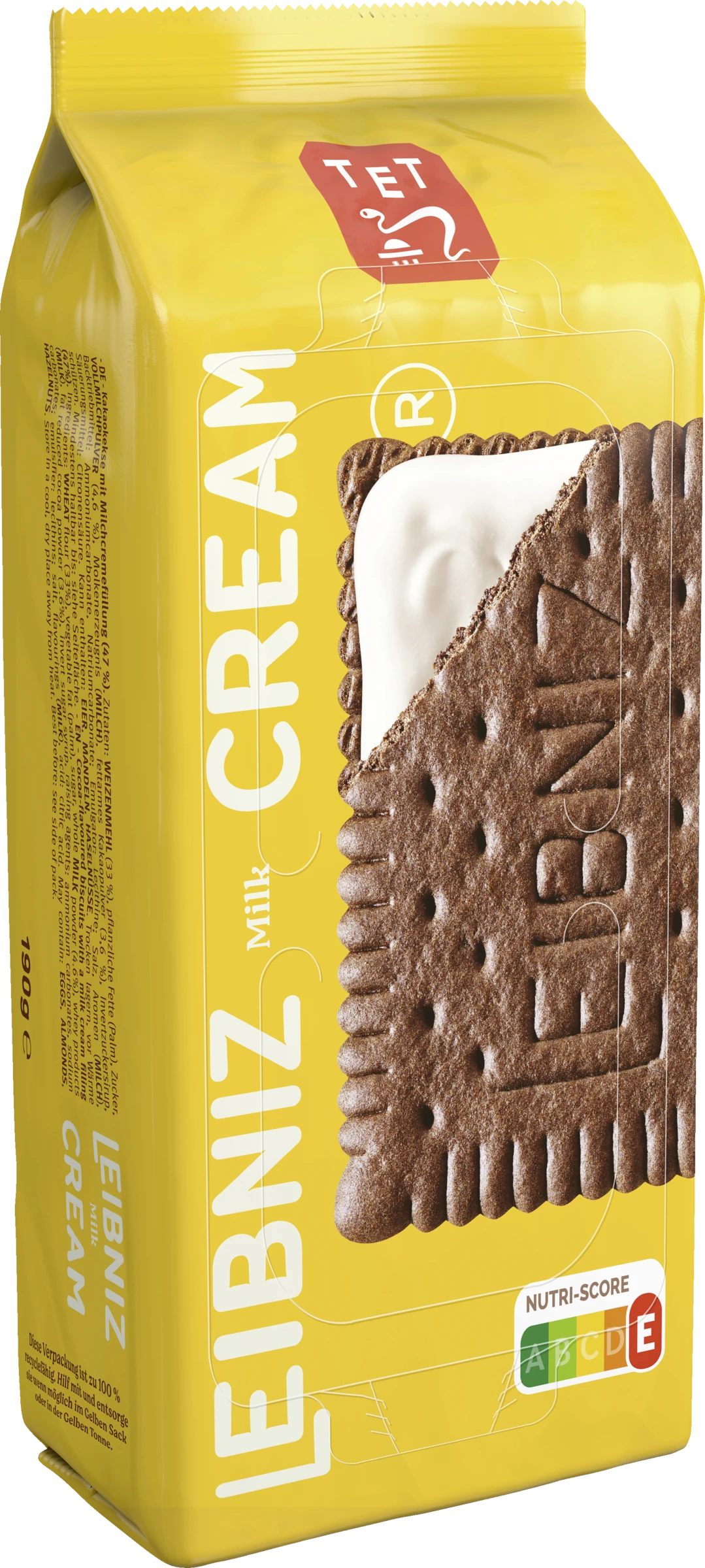 WEIZENMEHL, pflanzliche Fette (Palm), Zucker, VOLLMILCHPULVER (4,6 %), Molkenerzeugnis (MILCH), fettarmes Kakaopulver (3,6 %), Invertzuckersirup, Backtriebmittel: Ammoniumcarbonate, Natriumcarbonate; Emulgator: Lecithine; Salz, Aromen (MILCH), Säuerungsmittel: Citronensäure