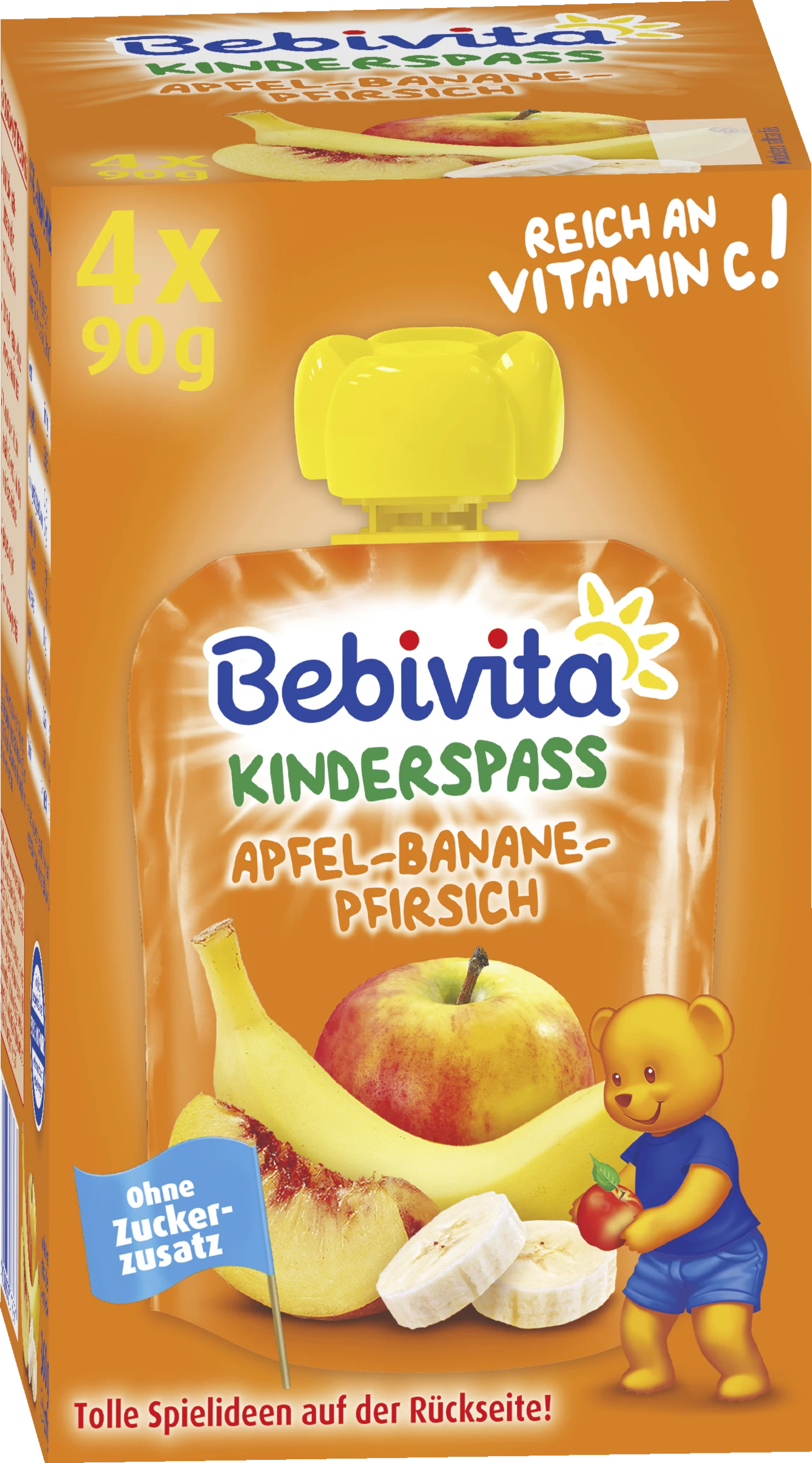 100% Frucht (Apfel 60%, Bananen 25%, Pfirsich 15%), Vitamin C.