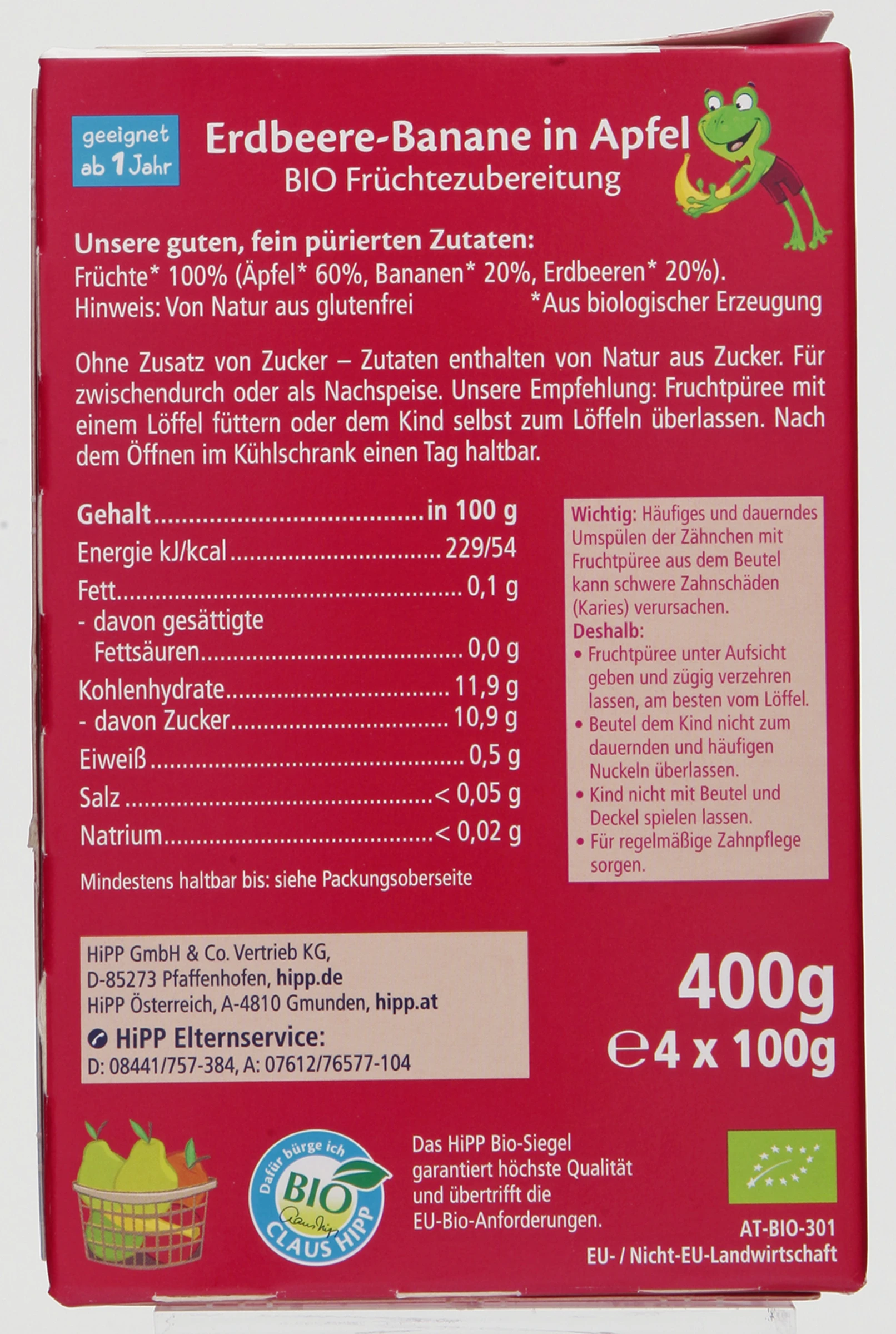 Früchte* 100% (Äpfel* 60%, Bananen* 20%, Erdbeeren* 20%).