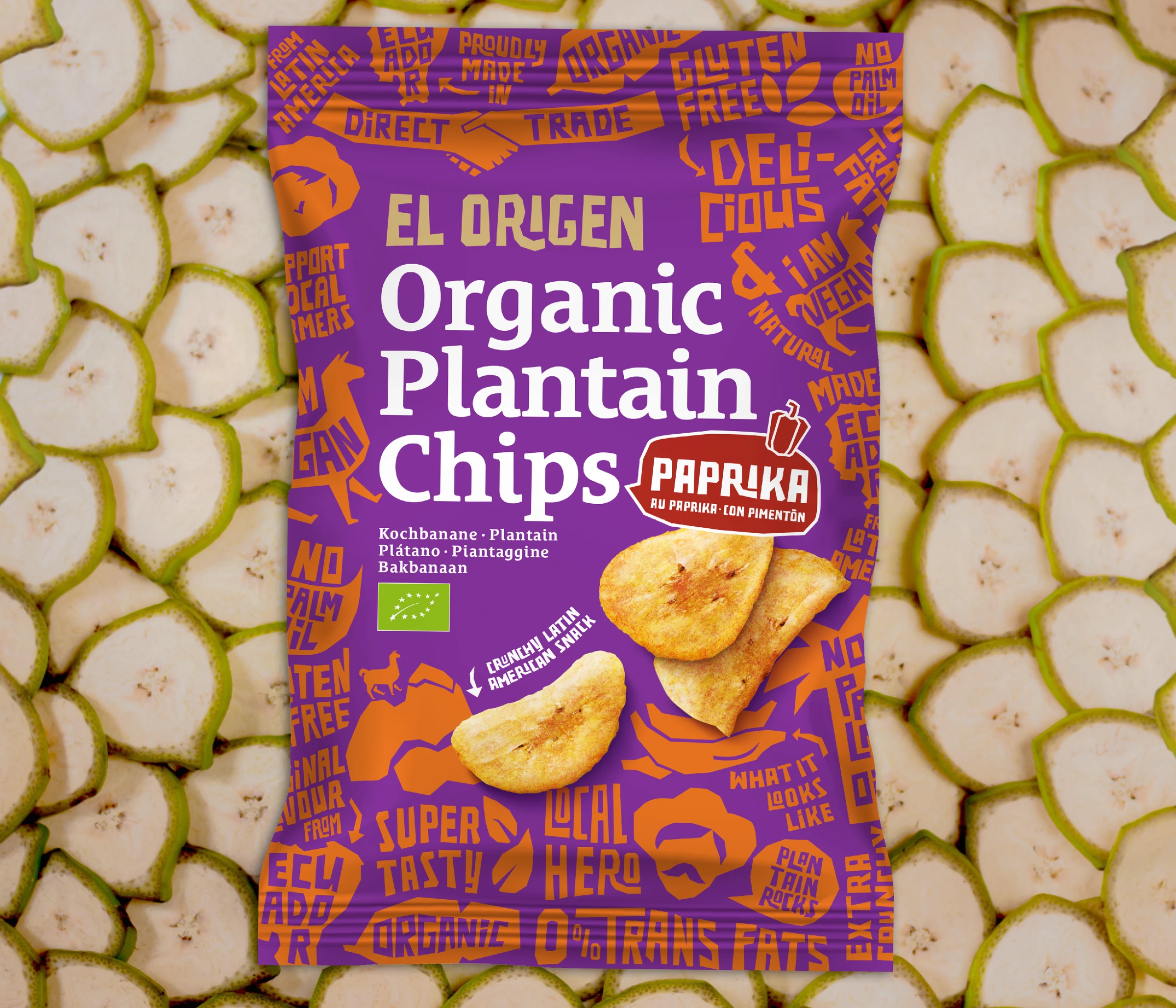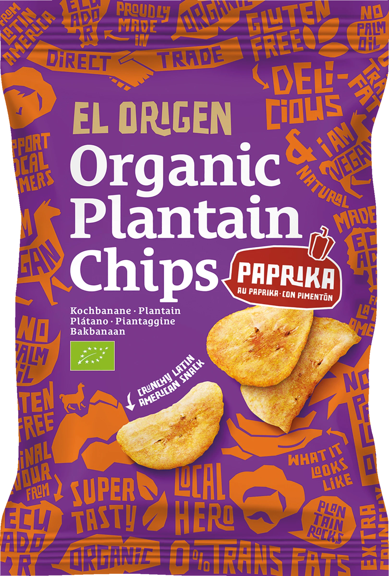 Die Bio-Kochbananen Chips mit Paprika bieten ein neuartiges Snackerlebnis und eine echte Alternative zu klassischen Kartoffelchips. In Lateinamerika zählen Kochbananen zu den traditionellen Grundnahrungsmitteln und erfreuen sich schon lange großer Beliebtheit.Die Chips sind vegan, ohne Palmöl, glutenfrei und kommen durch wertvolle bio-zertifizierte Zutaten ganz ohne künstliche Zusätze aus. Dazu sind sie super lecker und extra crunchy.