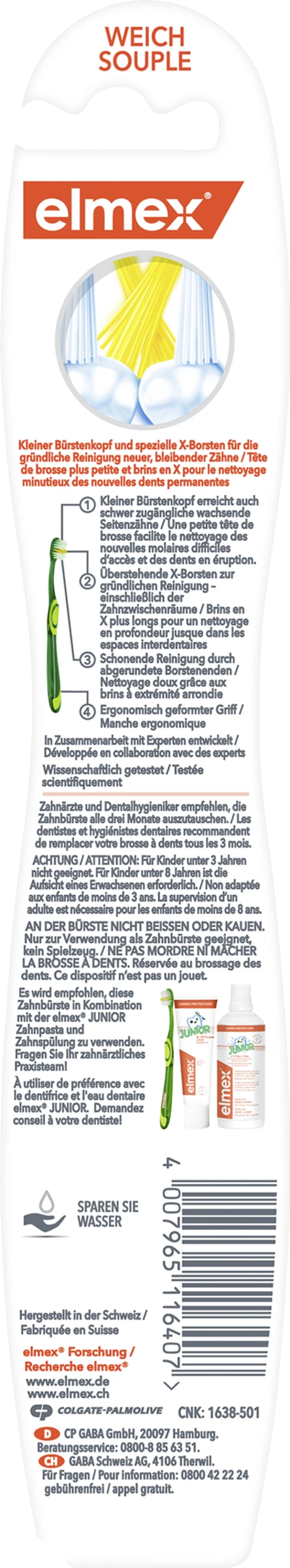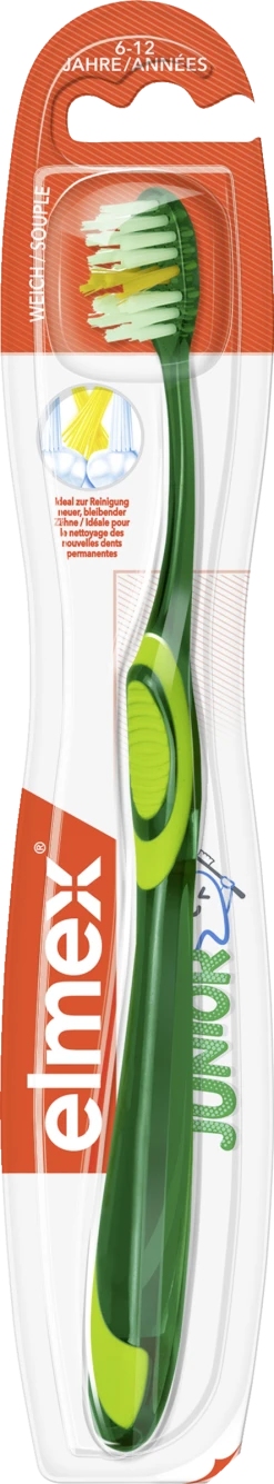 Mit kleinem Bürstenkopf und X-Borsten, um eine gründliche Reinigung, während des Zahnwechsels zu erleichtern.