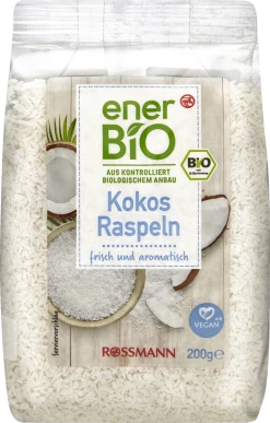 Kokosraspeln – mehr als nur Deko!Macht süße Backwaren noch köstlicher, gibt asiatischen Gerichten noch mehr Flavour, und lässt sich auch pur genießen: Unsere enerBiO Kokosraspeln sind nicht nur etwas für’s Auge, sondern auch für den Bio-Genießer-Gaumen.Genießen Sie unsere Raspeln aus schonend geernteten Kokosnüssen– für echtes Sommer-Sonne-Strand-Feeling für Ihre Geschmacksnerven.