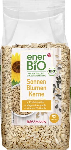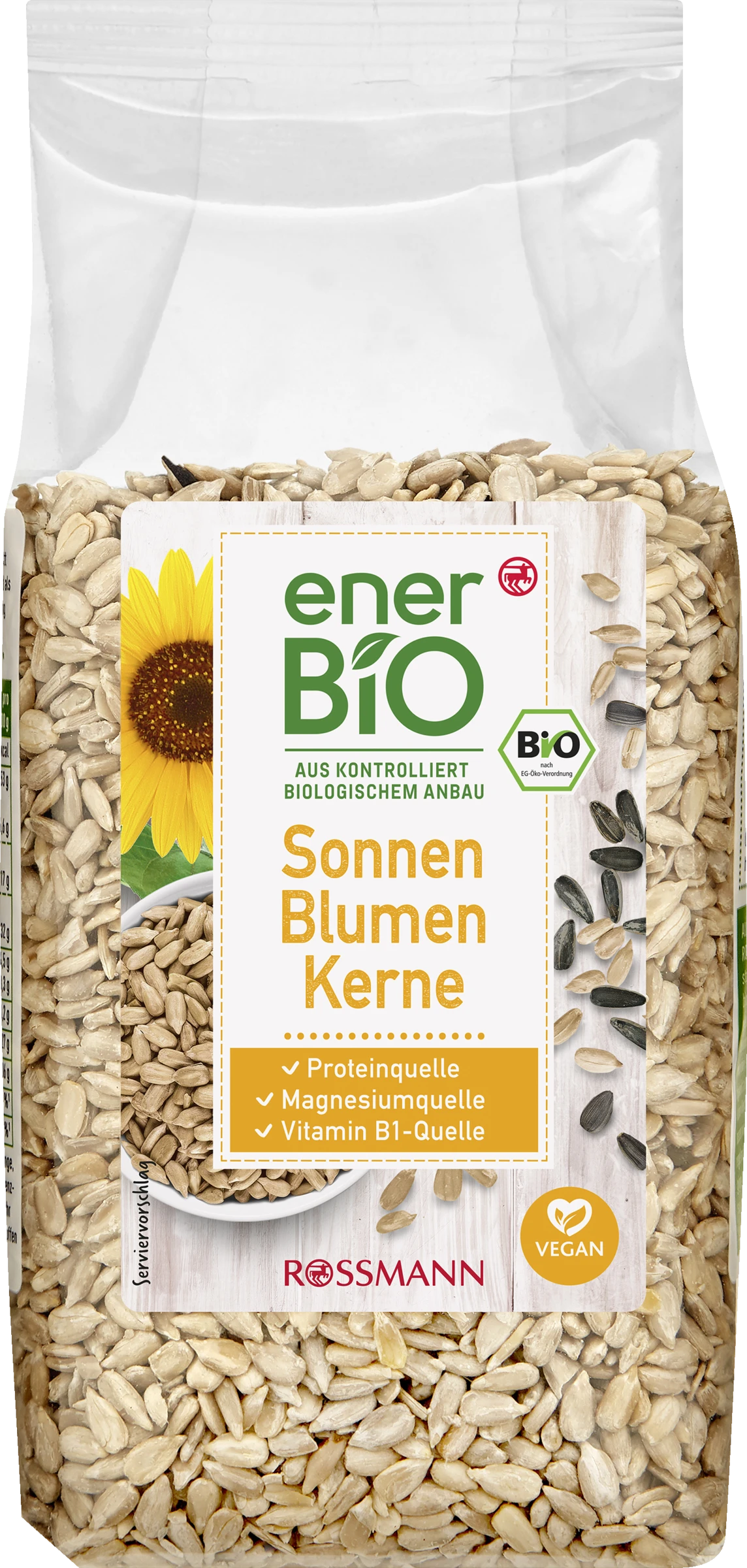 Hätten Sie’s gewusst? Wie ein Kompass. Die Sonnenblume richtet sich täglich nach dem Verlauf der Sonne und dreht sich in ihre Richtung mit. Außer die Samen sind reif: Dann verliert die Blüte ihre leuchtende Farbe und knickt (durch das Gewicht) herunter. Klein, knackig, köstlich. In Suppen, zum Backen oder als Müsli-Zutat: Unsere enerBiO Sonnenblumenkerne sind vielseitig genießbar. Übrigens: der botanische Name “Helianthus” leitet sich vom griechischen Sonnenwort “Helios” ab. Unser Tipp: Kurz ohne Fett anrösten und als Salat-Topping verwenden.