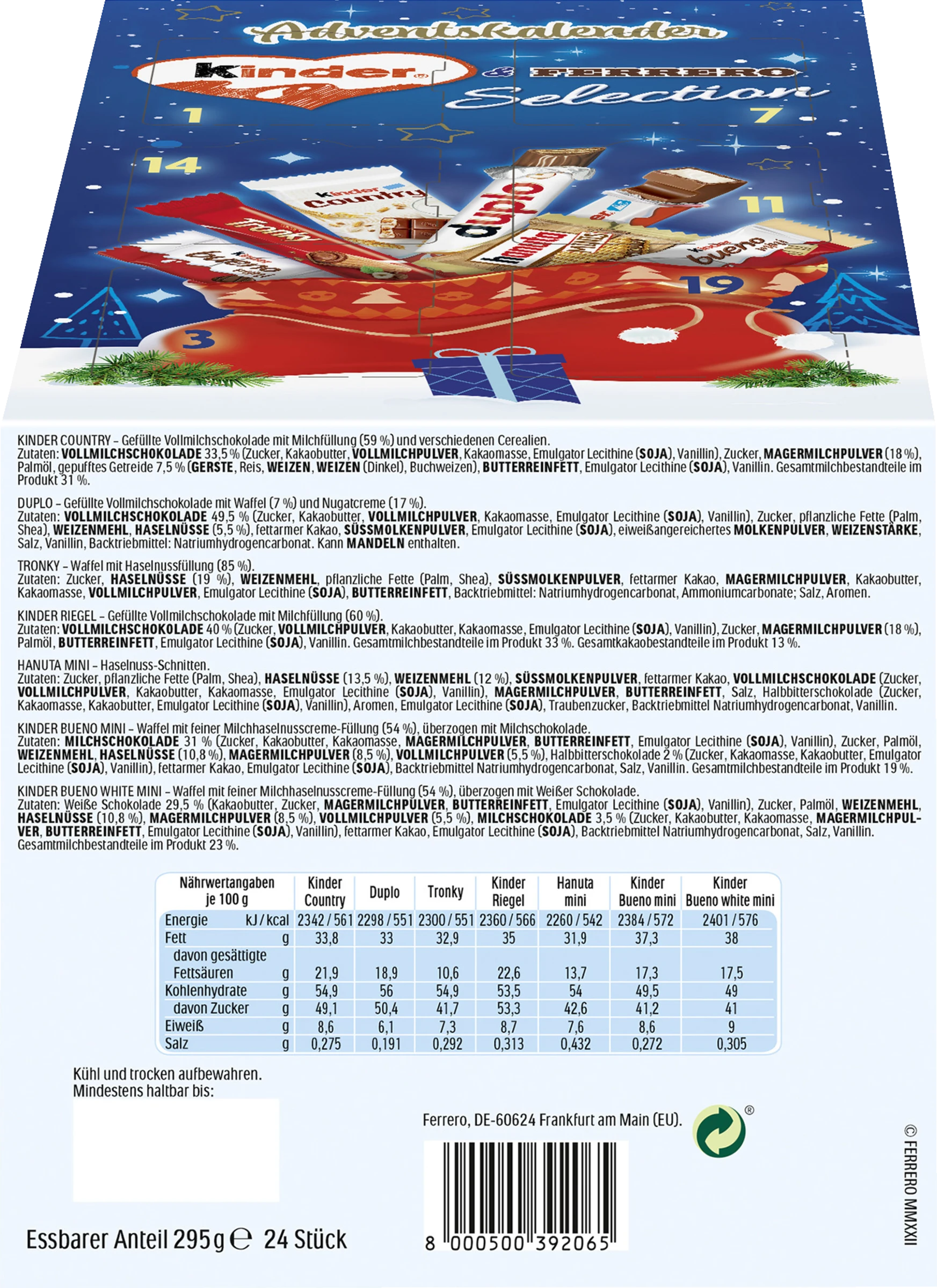 Jetzt neu! Der Adventskalender von kinder & Ferrero hat Türchen auf allen vier Seiten und ist ein echter Hingucker für den weihnachtlichen Tisch. Gefüllt mit einer neuartigen Mischung aus Snacks von kinder & Ferrero ist für eine aufregende Vielfalt in der Vorweihnachtszeit gesorgt.