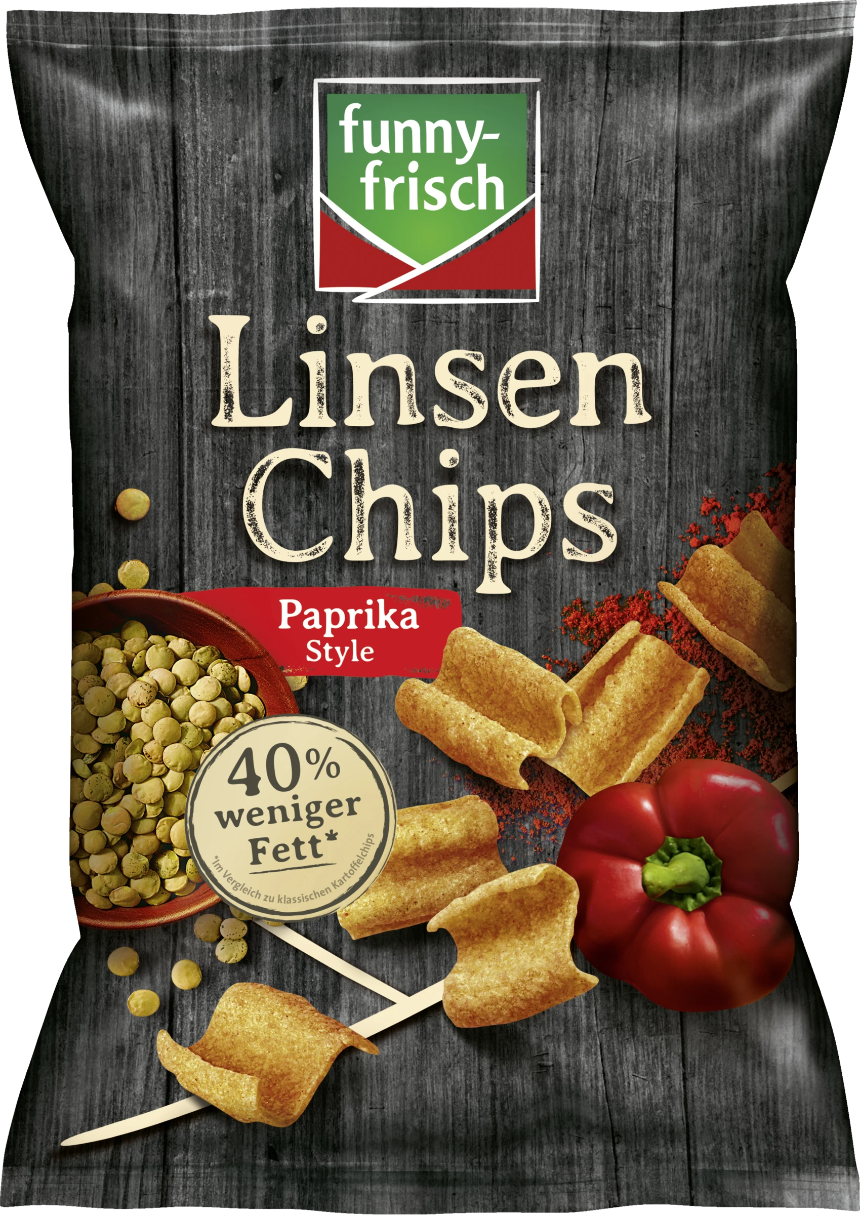 Die funny-frisch Linsen Chips: Aus Linsen hergestellt und knusprig erhitzt, werden sie für funny-frisch lecker mit Paprika gewürzt.