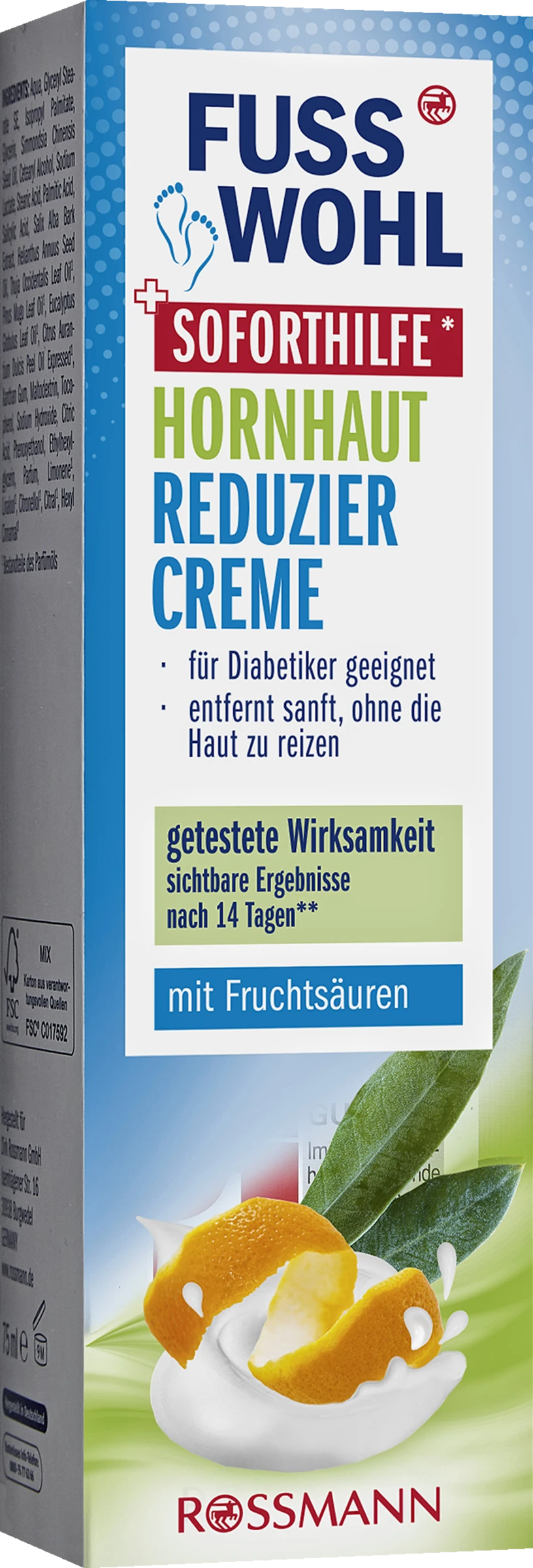 Die Fusswohl Hornhaut Reduziercreme bietet eine intensive Pflege zur Reduzierung der Hornhautbildung.