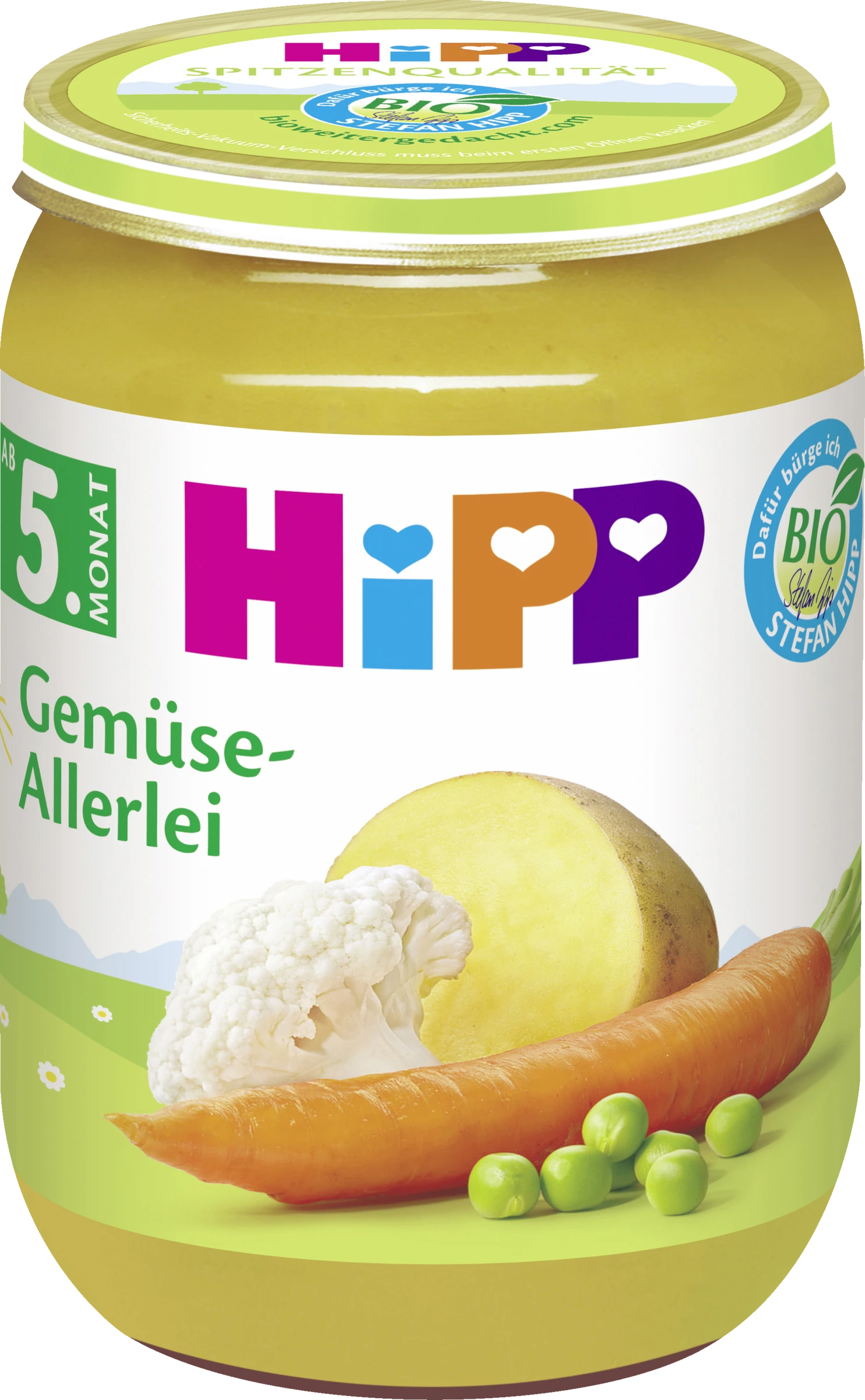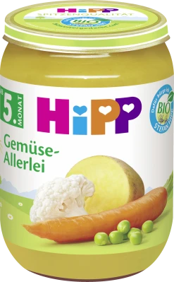 Das Gemüse für HiPP wird gemäß den strengen Richtlinien des biologischen Landbaus angebaut – ohne künstliche Dünge- und Spritzmittel. Es ist ideal für den Start mit der Beikost nach dem vollendeten 4. bis 6. Monat. HiPP Gemüse sind besonders auf die Ernährungsbedürfnisse des Babys abgestimmt. So wie es für die erste Beikost empfohlen wird, setzen sie kein Salz zu – deshalb bitte auch nicht nachwürzen. Durch wertvolles Bio-Rapsöl in den 190g Gemüse-Gläschen wird Ihr Baby mit natürlichen Omega-3 Fettsäuren versorgt, die für die Entwicklung von Gehirn und Nervenzellen wichtig sind.