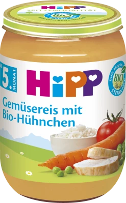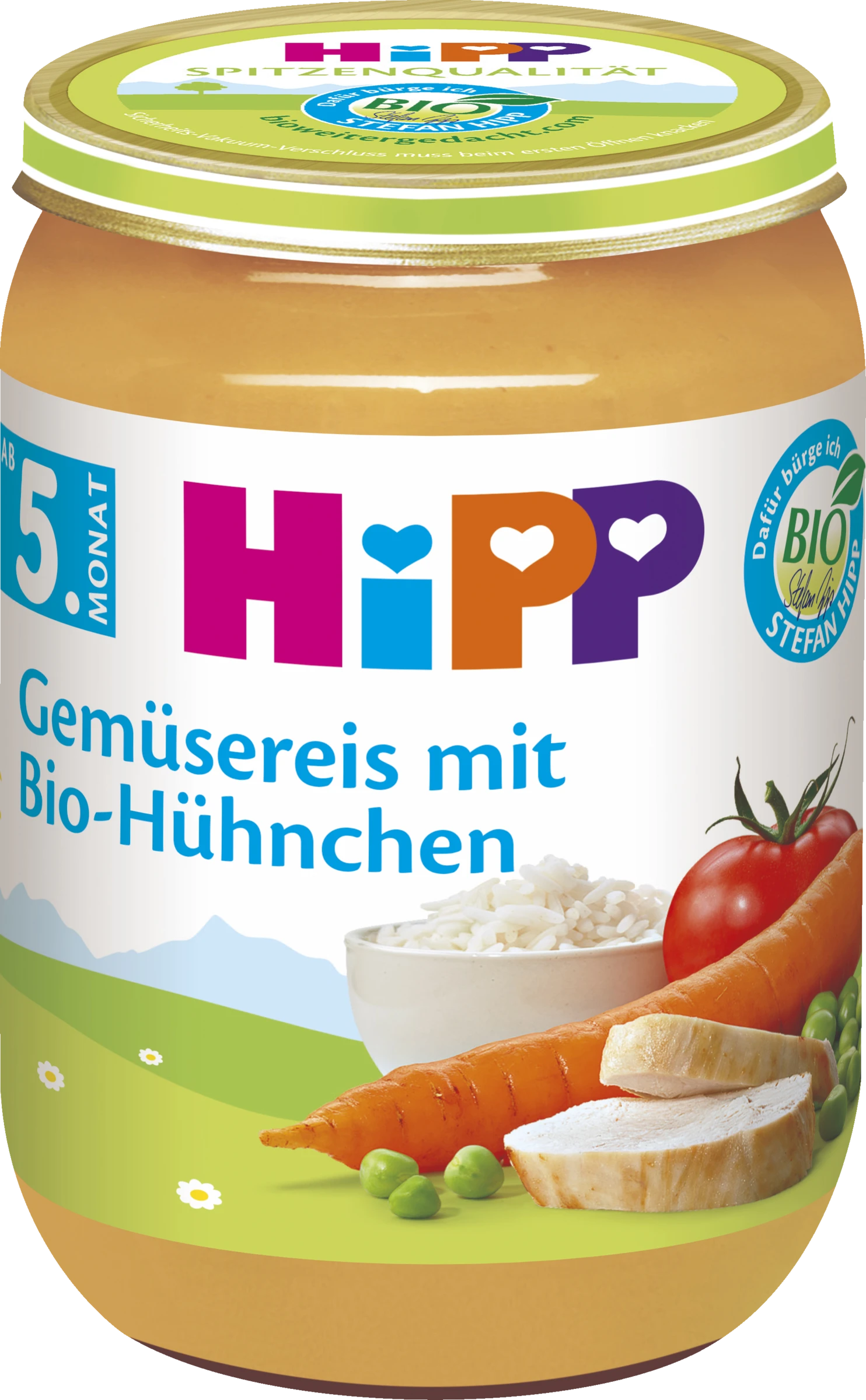 Die HiPP Menüs sind komplette wie auch vollwertige Mahlzeiten ab dem 5. Monat. Die wohlschmeckenden Menüs sind ohne Zusatz von Salz und in bester HiPP Bio-Qualität. Alle HiPP-Menüs enthalten dabei hochwertiges Bio-Rapsöl, das Ihr Baby mitnatürlicher Alpha-Linolensäure (eine Omega 3-Fettsäure) versorgt.