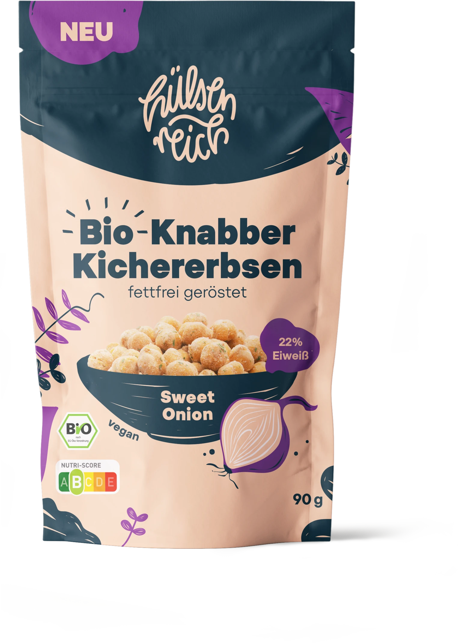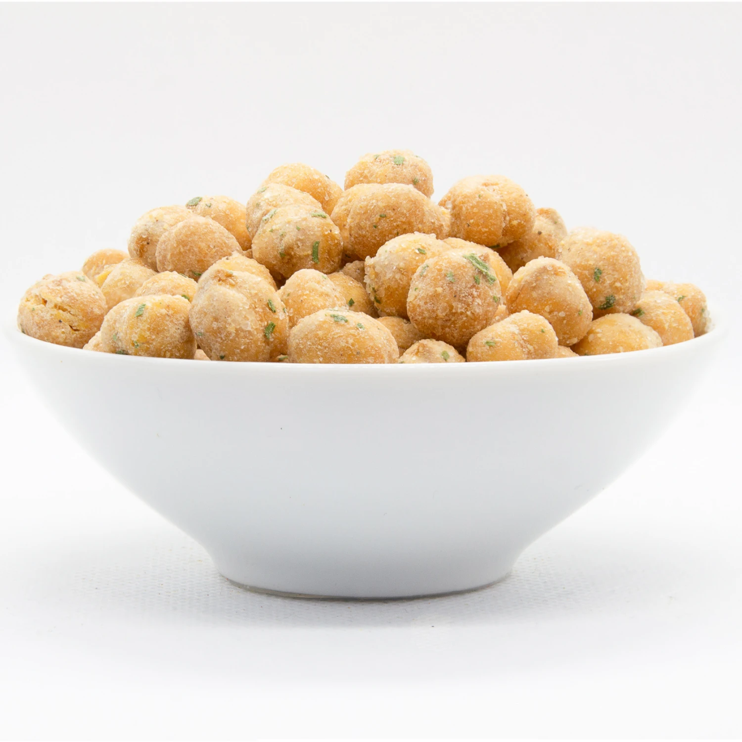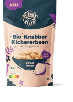 95% Bio-Kichererbsen*, 4% Sweet Onion-Gewürz (Zwiebel*, Knoblauch*, Pfeffer*, Zitrone*, Rohrzucker*, Meersalz, Petersilie*), Überzugsmittel: Gummi Arabicum*, Salz.