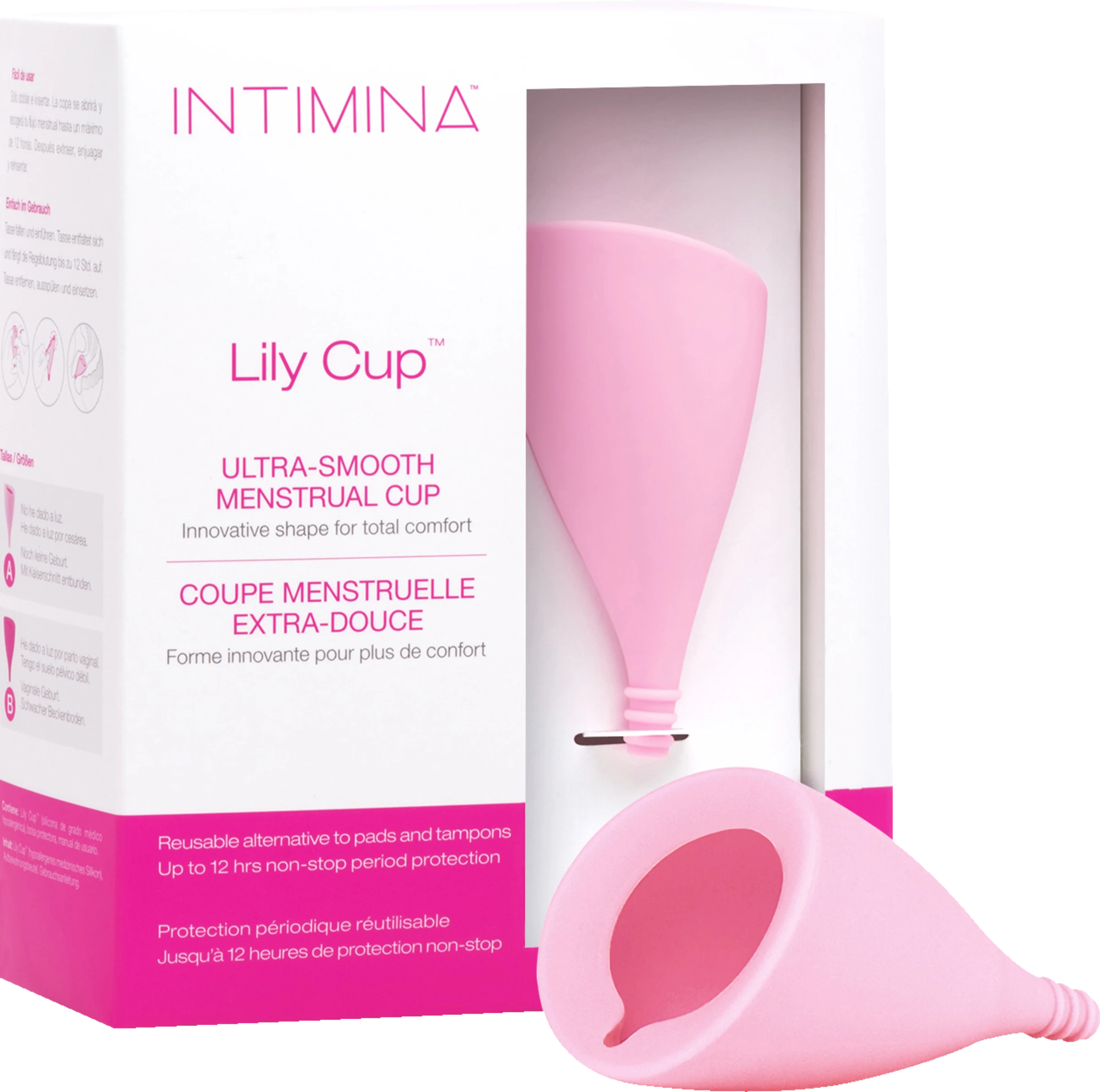 Lily Cup™ ist die neue Generation in der Monatshygiene – eine ultra-weiche, wiederverwendbare Menstruationstasse aus medizinischem Silikon. Die schlanke und flexible Tasse, für deren Form die Natur Pate stand, bietet Ihnen absolute Bequemlichkeit und Komfort während Ihrer Periode. Lily Cup wurde speziell auf die Bedürfnisse Ihres aktiven Lebensstils zugeschnitten. Sie bietet lang anhaltenden Schutz bis zu 8 Stunden an starken sowie schwächeren Tagen und macht so ein ständiges Wechseln überflüssig.