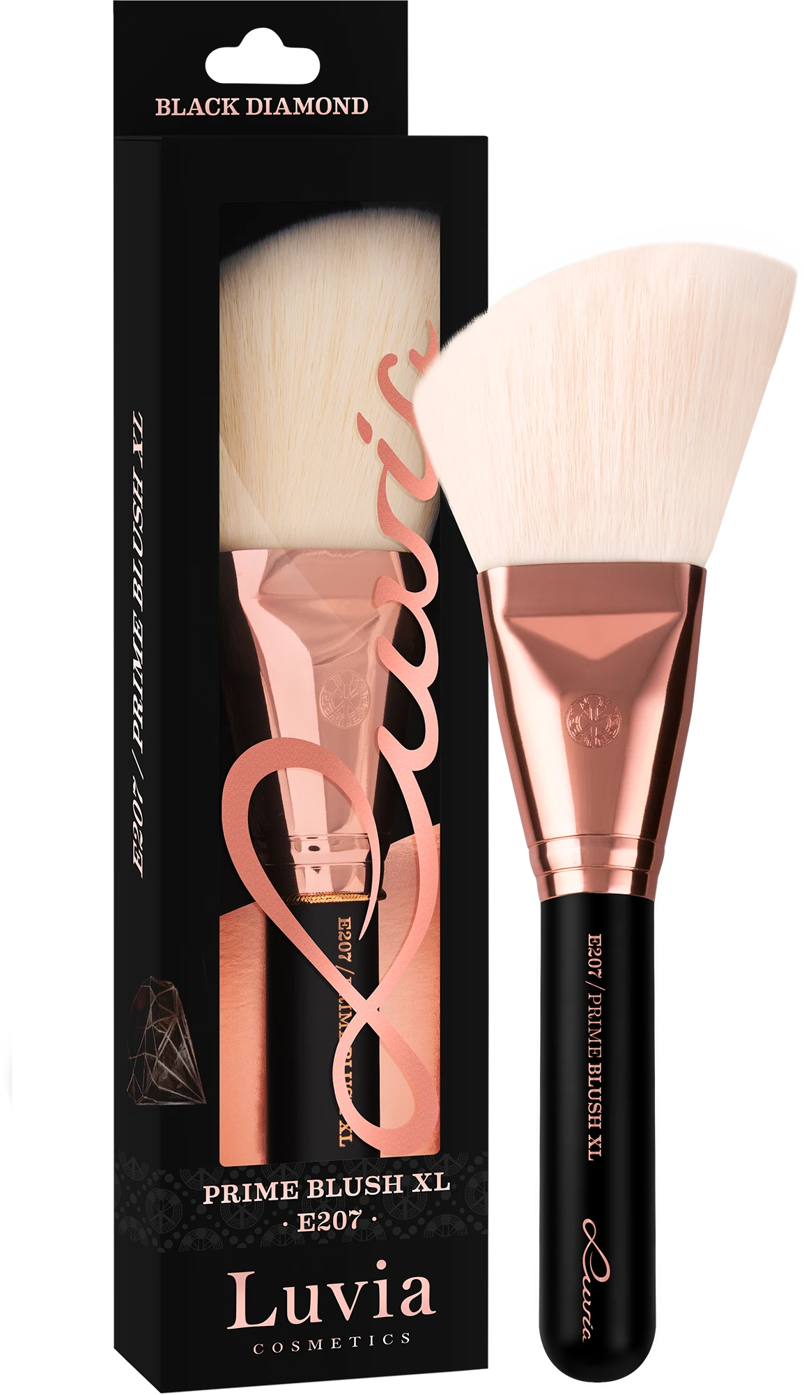 Der E207 Prime Blush XL aus der Essential Brushes – Black Diamond Kollektion kombiniert Luxury Beauty & Vegan Lifestyle. Das markeneigene Nurai-Haar ist aufgrund der speziell veredelten Synthetikhaare besonders sanft zur Haut und bestens fur Allergiker geeignet – ganz nach der „State of the Art“ Technologie. Dieser luxuriöse Pinsel eignet sich ideal für ein großflächiges Auftragen von Puder, Rouge, Highlighter und Bronzer.