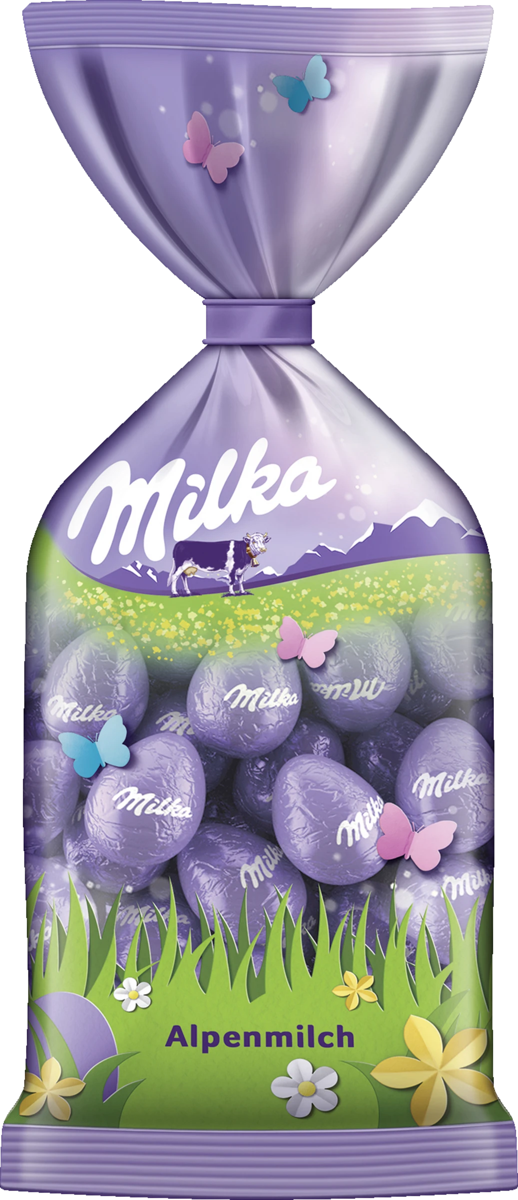 Für die Liebhaber von zarter Milka Alpenmilch Schokolade gibt es die Milka Oster-Eier Alpenmilch 100 g aus zarter Milka Alpenmilch Schokolade. In kleiner, runder Form sind die Oster-Eier ideal zum Anbieten und Teilen, zum Naschen für zwischendurch oder zum Bestücken des bunten Osternestes.