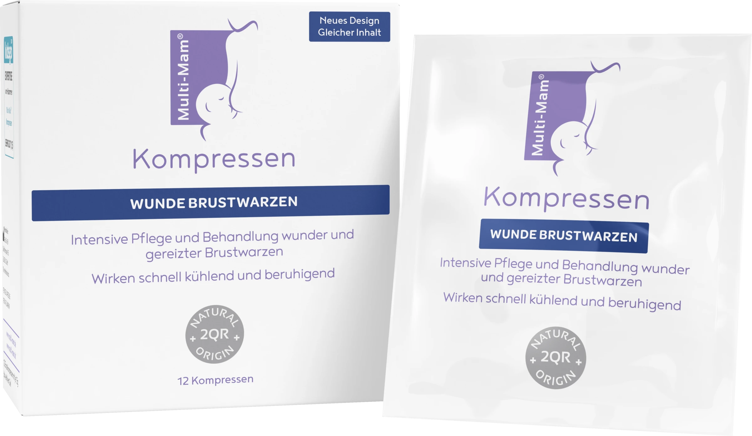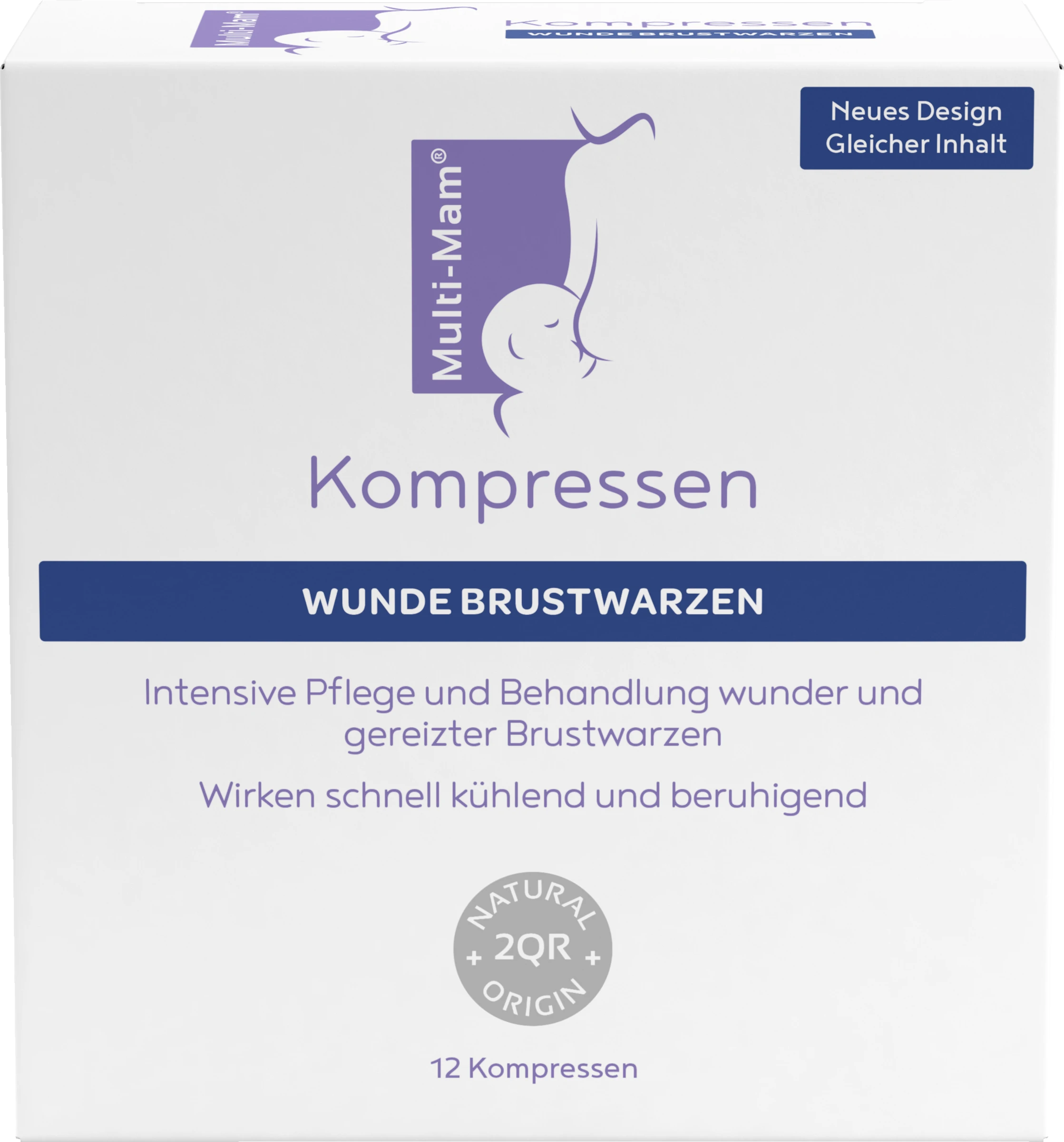 AnwendungDie Multi-Mam Kompressen sind einzeln verpackt und sollten zwischen dem Stillen aufgelegt werden. Öffnen Sie das Päckchen, entfalten Sie die Kompresse und legen Sie die Seite mit dem Gel auf die Brustwarze. Lassen Sie die Kompresse solange auf der Brustwarze liegen bis das Gel eingezogen ist. Das Gel muss vor dem Stillen nicht entfernt werden. Wiederholen Sie die Behandlung mindestens 2 mal täglich bis die Irritationen verschwunden sind.