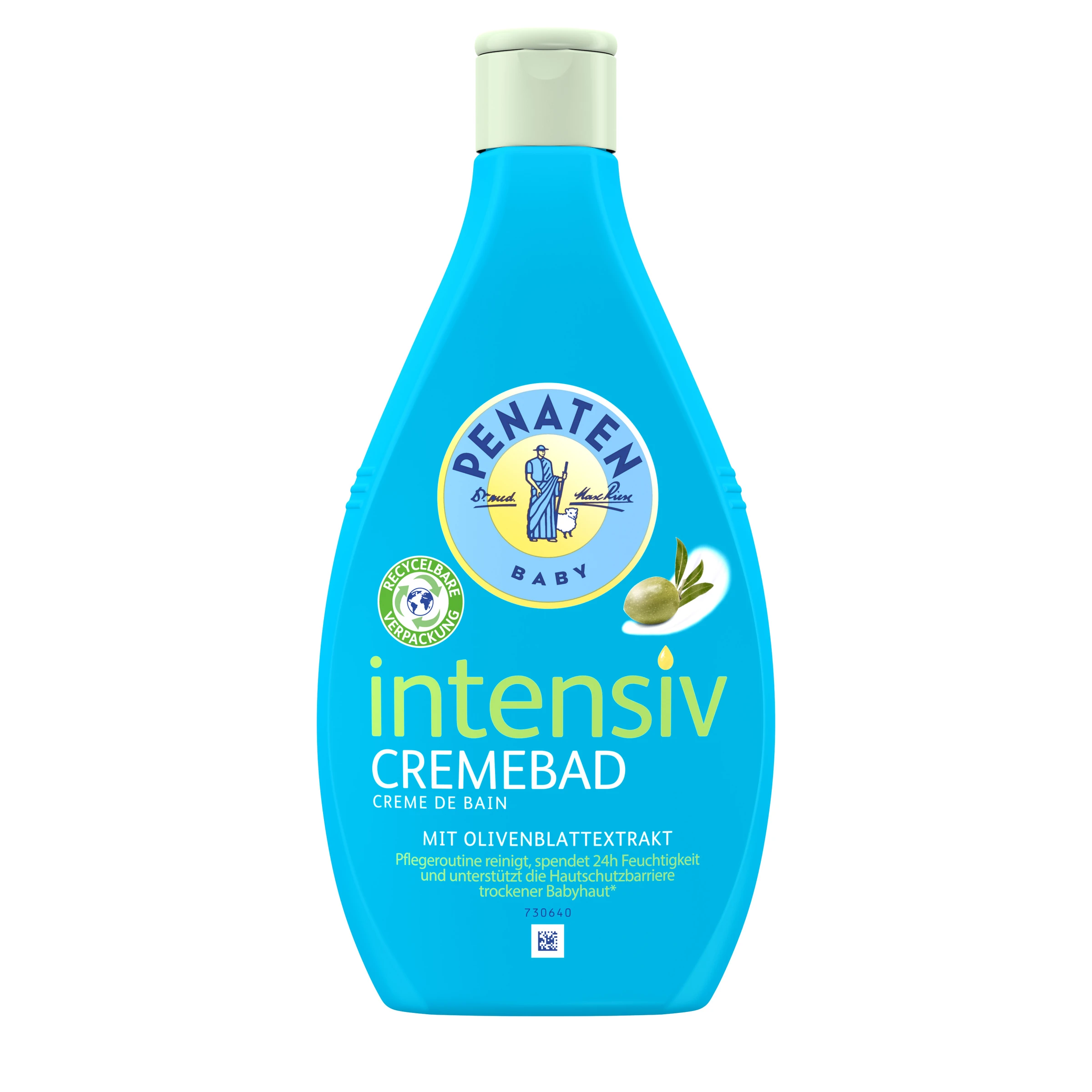Das PENATEN Intensiv Cremebad eignet sich ideal als pflegender Baby Badezusatz zum sanften Baby Baden. Dank der “keine Tränen mehr” Formulierung ist das PENATEN Intensiv Cremebad so mild wie pures Wasser zu den Augen. Mit einem besonderen Komplex aus Olivenblattextrakt, Vitamin E und Mineralien spendet die Babypflege für Neugeborene 24h Feuchtigkeit und unterstützt die Hautschutzbarriere.