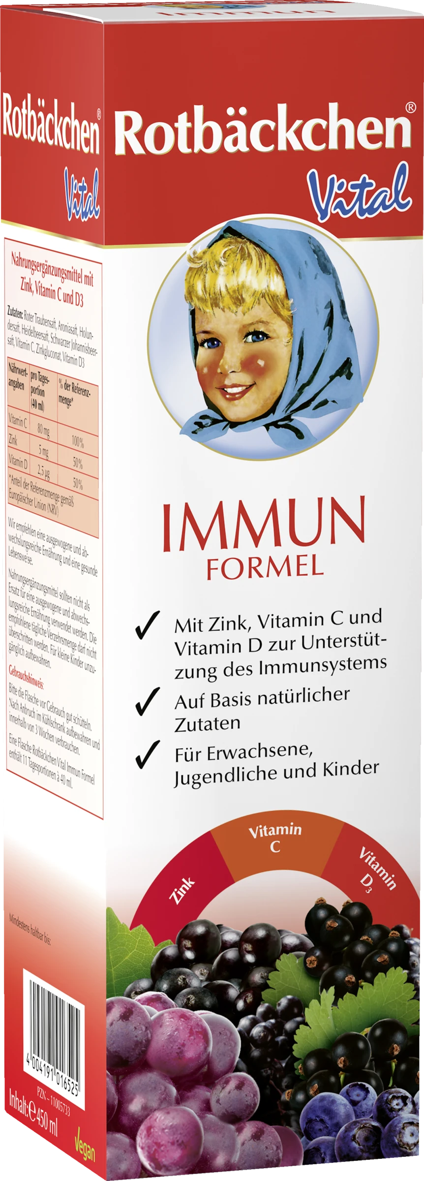 Roter Traubensaft, Aroniasaft, Holundersaft, Heidelbeersaft, Schwarzer Johannisbeersaft, Vitamin C, Zinkgluconat, Vitamin D3