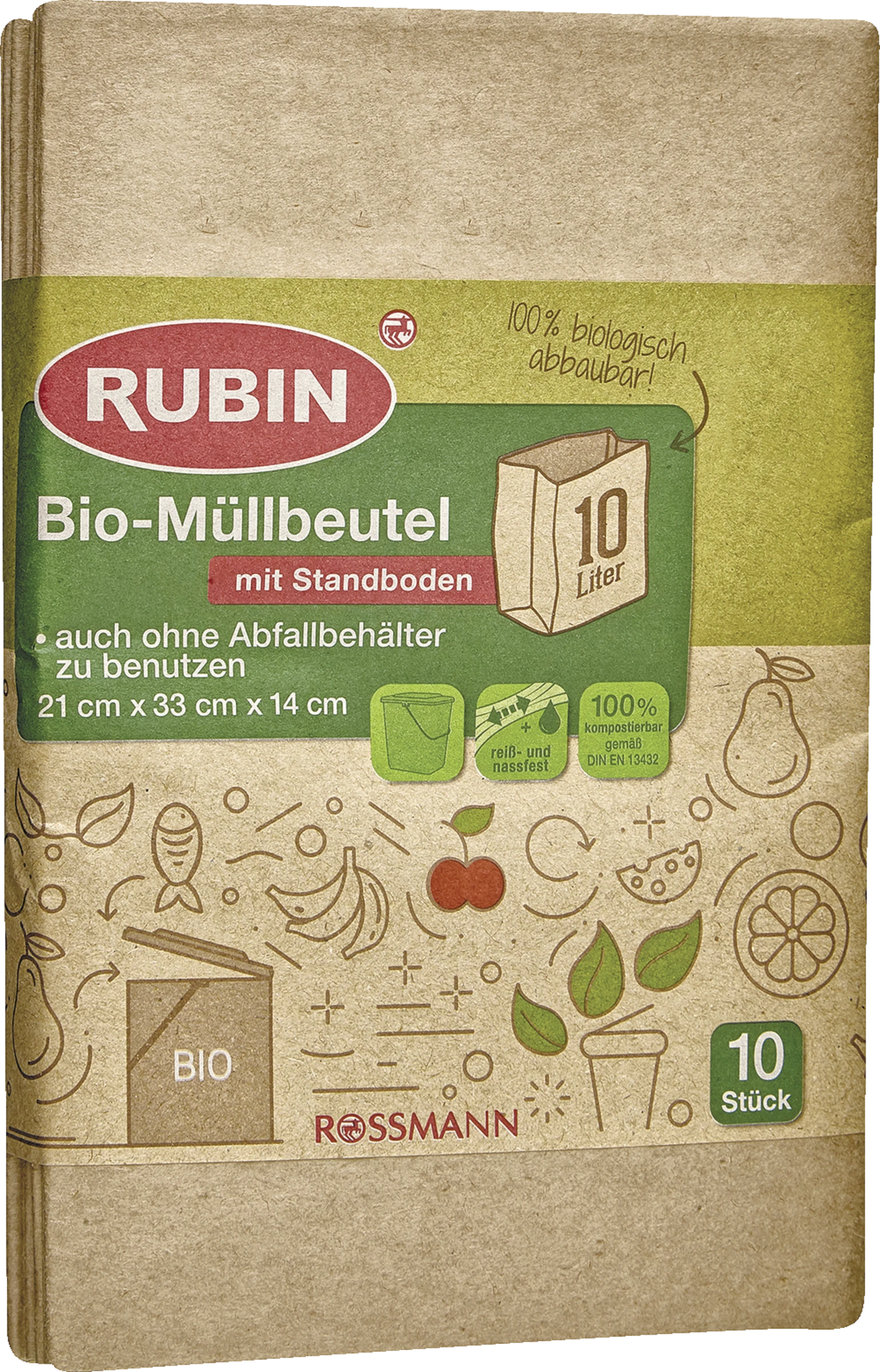 RUBIN Bio-Müllbeutel eignen sich hervorragend für organischen Hausabfall. Sie sind aus Papier mit extra dichtem Standboden, besonders reiß- und nassfest und kompostierbar. Sie eignen sich besonders für die Entsorgung von Speiseresten.