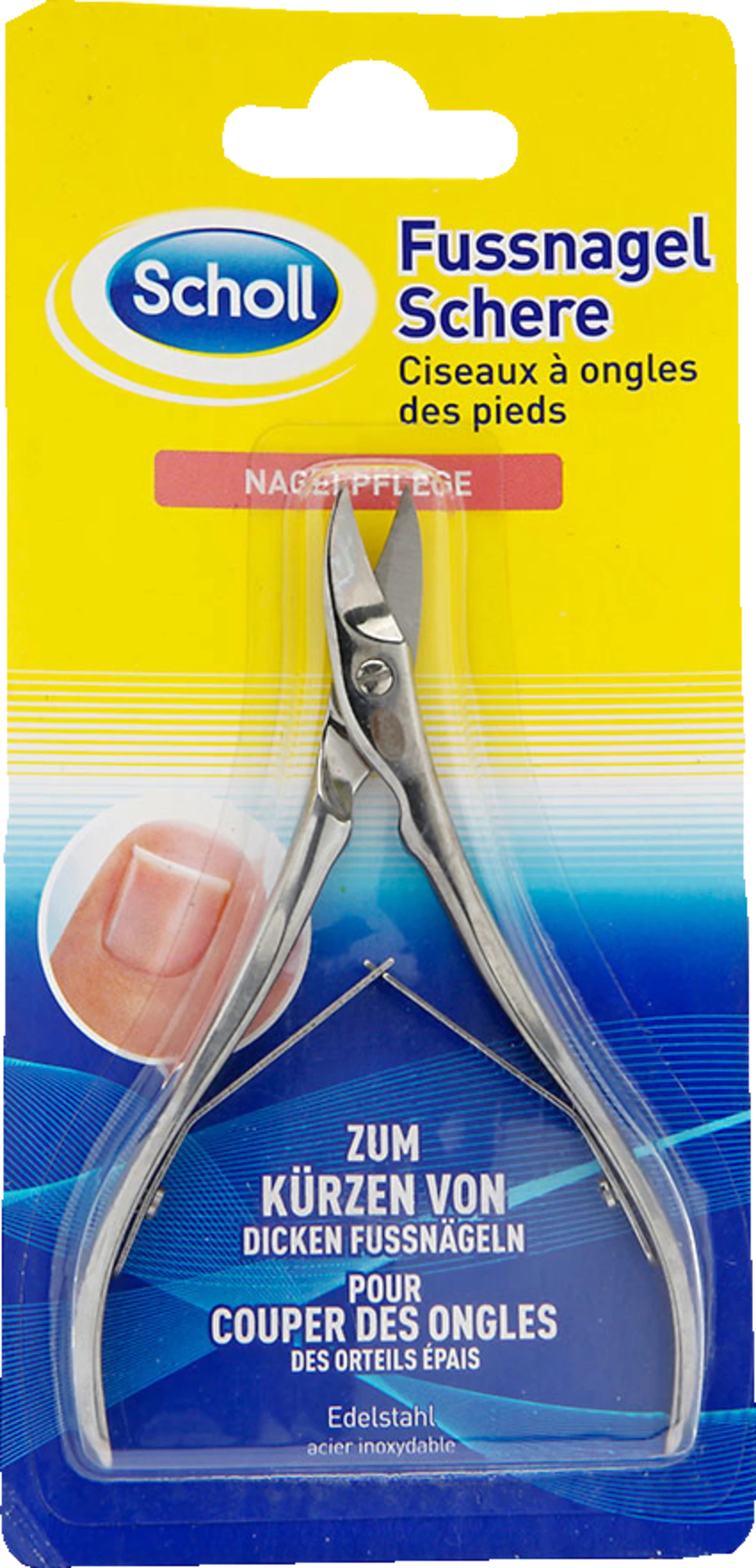 Die Scholl Fußnagel Schere liefert professionelle Ergebnisse. Ihr spezielles Design kombiniert die Präzision und Schärfe einer Nagelschere mit der Kraft und Haltbarkeit einer Zange. Der ergonomisch geformte Zangengriff ermöglicht ein einfaches Kürzen der Fussnägel. Die Doppelfeder reduziert den Kraftaufwand zusätzlich und sorgt für ein müheloses Schneiden von Fußnägeln.