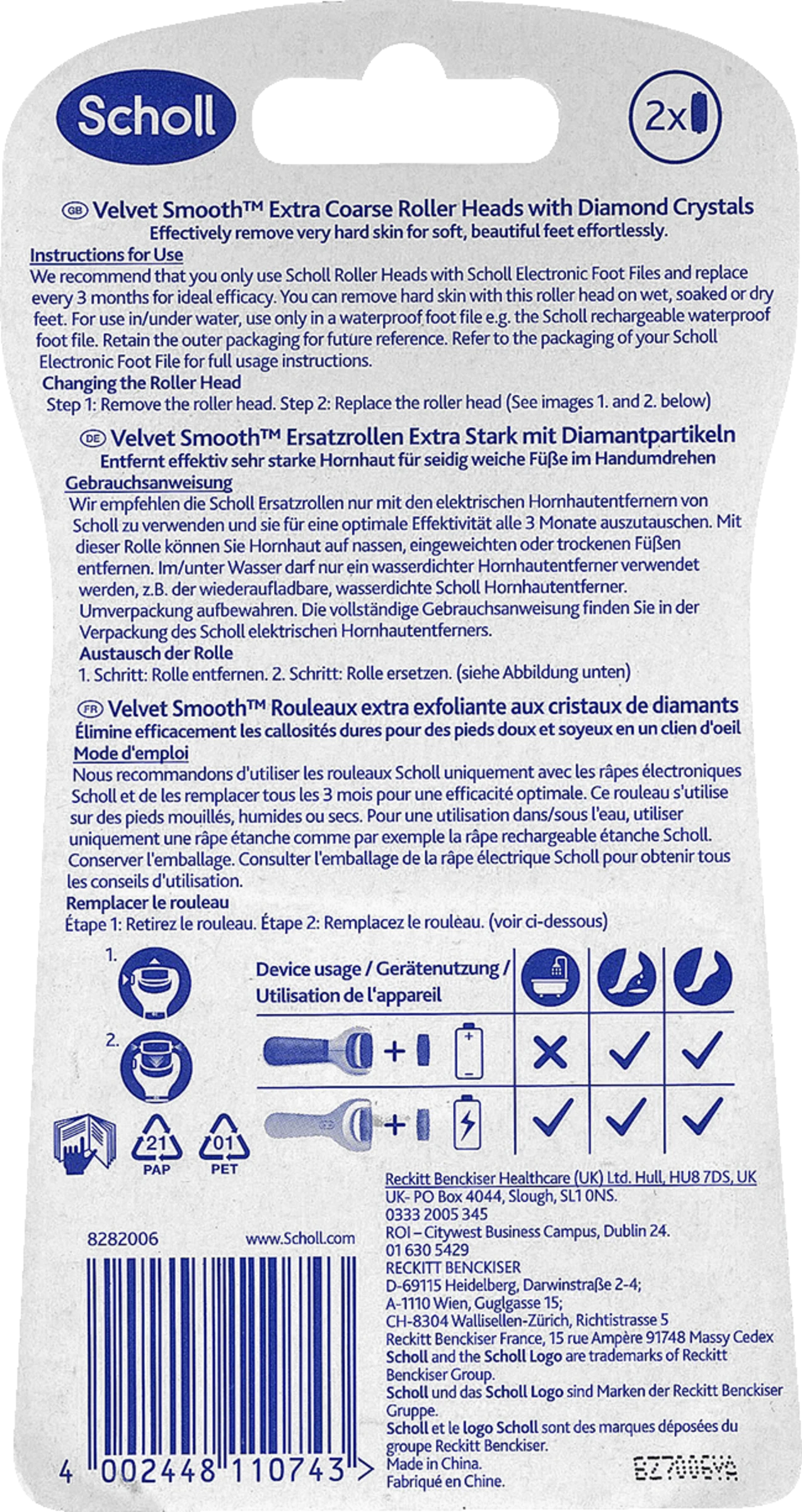 Scholl Velvet Smooth Wet & Dry Ersatzrollen Extra Stark Mit Diamantpartikeln