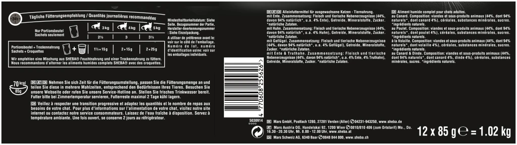Sie empfehlen eine Mischung aus SHEBA® Feuchtnahrung und einer Trockennahrung zu füttern.