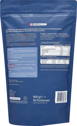 39% SOJAEIWEIß-ISOLAT, 20% Honig, 11% Sojaöl, 8% MAGERMILCHPULVER, 5% MILCHEIWEIß, 6% Kakaopulver, 3% JOGHURTPULVER, Glukosesirup, Aroma, Kaliumchlorid, Tri-Calciumphosphat, Magnesiumdicitrat, Emulgator (Sonnenblumen-Lecithin), Süßungsmittel (Steviolglykoside), Eisen(II)-sulfat, L-Ascorbinsäure (Vitamin C), Zinkoxid, Nicotinamid (Niacin), Kupfer(II)-gluconat, D-alpha Tocopherylacetat (Vitamin E), Mangan(II)-sulfat, Antioxidationsmittel (DL-alpha-Tocopherol), Calcium-D-pantothenat (Vitamin B6), Pyridoxinhydrochlorid (Pantothensäure), Riboflavin (Vitamin B2), Thiaminmononitrat (Vitamin B1), Trennmittel (Siliciumdioxid), Retinylacetat (Vitamin A), Pteroylmonoglutaminsäure (Folsäure), Maltodextrin, Natriumjodid, Natriumselenit, D-Biotin, Phyllochinon (Vitamin K), Cholecalciferol (Vitamin D), Cyanocobalamin (Vitamin B12).