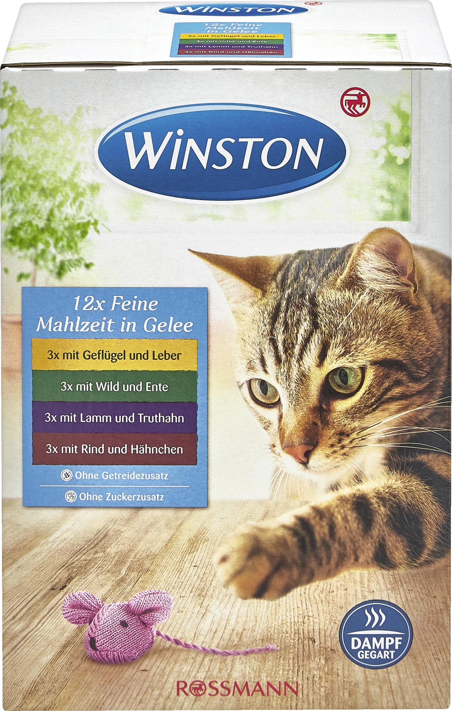 Aus Erfahrung wissen wir, dass Katzen Abwechslung lieben, daher enthält unser Winston Feine Mahlzeit Multipack eine Auswahl an leckeren Geschmacksrichtungen. Das enthaltene Taurin kann zur Stärkung der Sehkraft beitragen sowie die Herzfunktion unterstützen. Eine schöne Haut und ein glänzendes Fell können durch das zugesetzte Biotin gefördert werden. Winston Feine Mahlzeiten wurden nach neuesten Erkenntnissen speziell auf die Ernährungsbedürfnisse Ihrer Katze abgestimmt. Hergestellt aus ausgesuchten Rohstoffen enthalten sie wichtige Nährstoffe in besonders schmackhaften Variationen. Aus Überzeugung Qualität. Aus Liebe Winston.